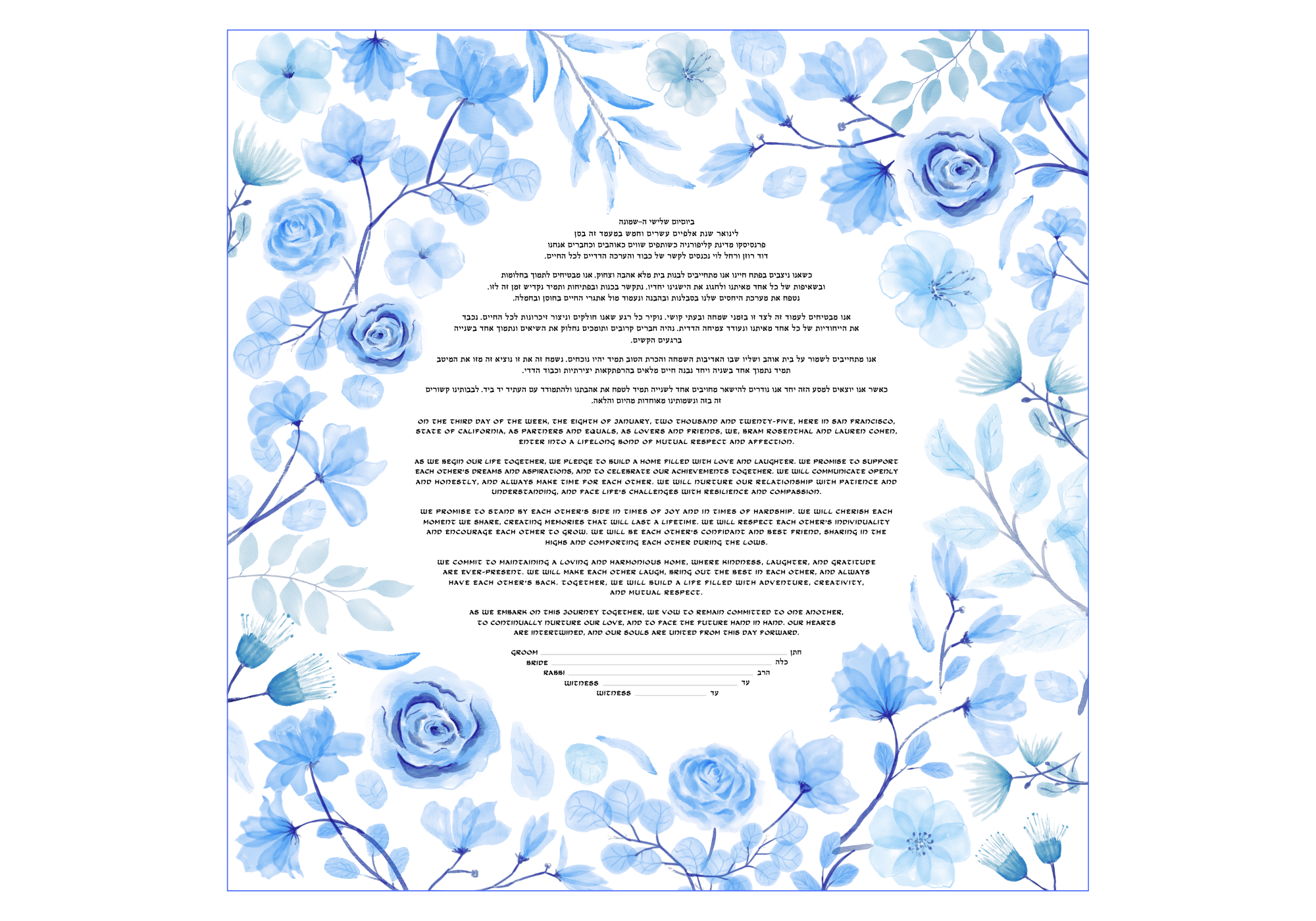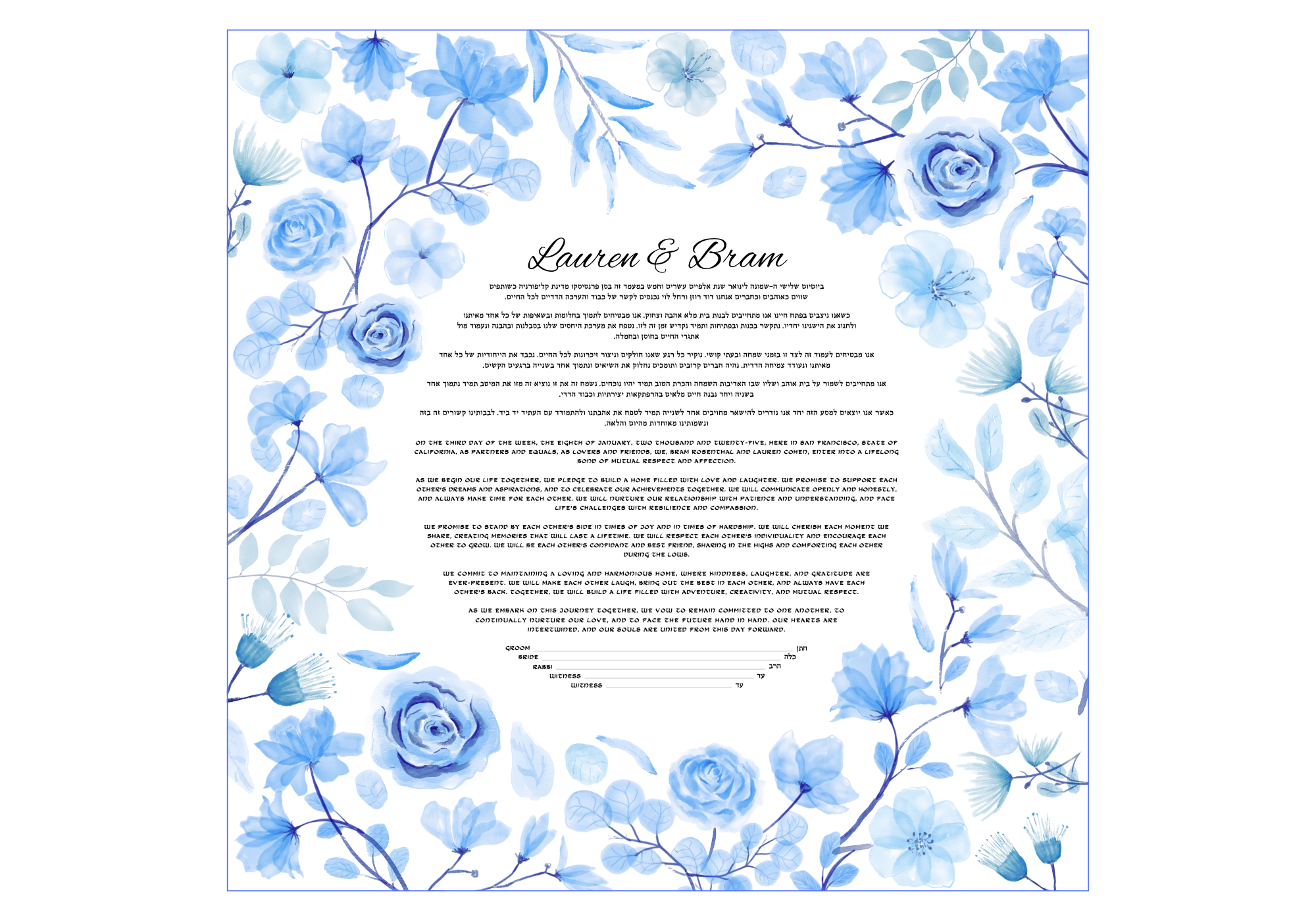 Choosing the right layout for your Ketubah text is a personal touch that defines how your vows are presented. We offer two distinct formatting styles to ensure your Ketubah perfectly reflects your aesthetic preferences and the significance of your ceremony.